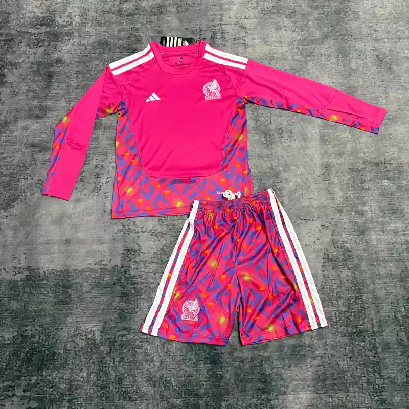 2026 Kids Mexico Long Sleeved Goalkeeper Soccer Jersey 1:1 Thai Quality
